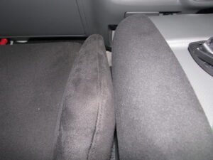 - リクライニングの角度によっては、天井部リヤエアコンのふくらみに干渉します。運転には支障がありませんが、休憩等で倒すことはできません。